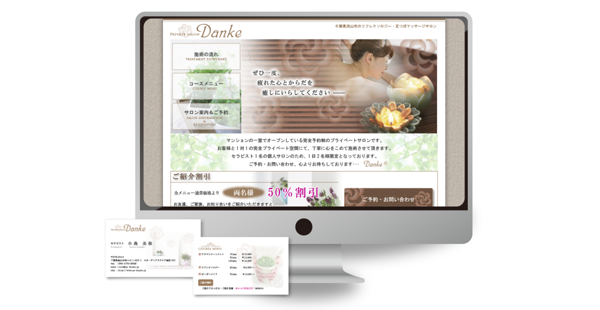 清潔感と高級感、静寂した中に流れるアロマオイルの香りとリラクゼーションサウンド。このひとときは特別な時間が流れている雰囲気がありました。そんな雰囲気を表現したホームページです。